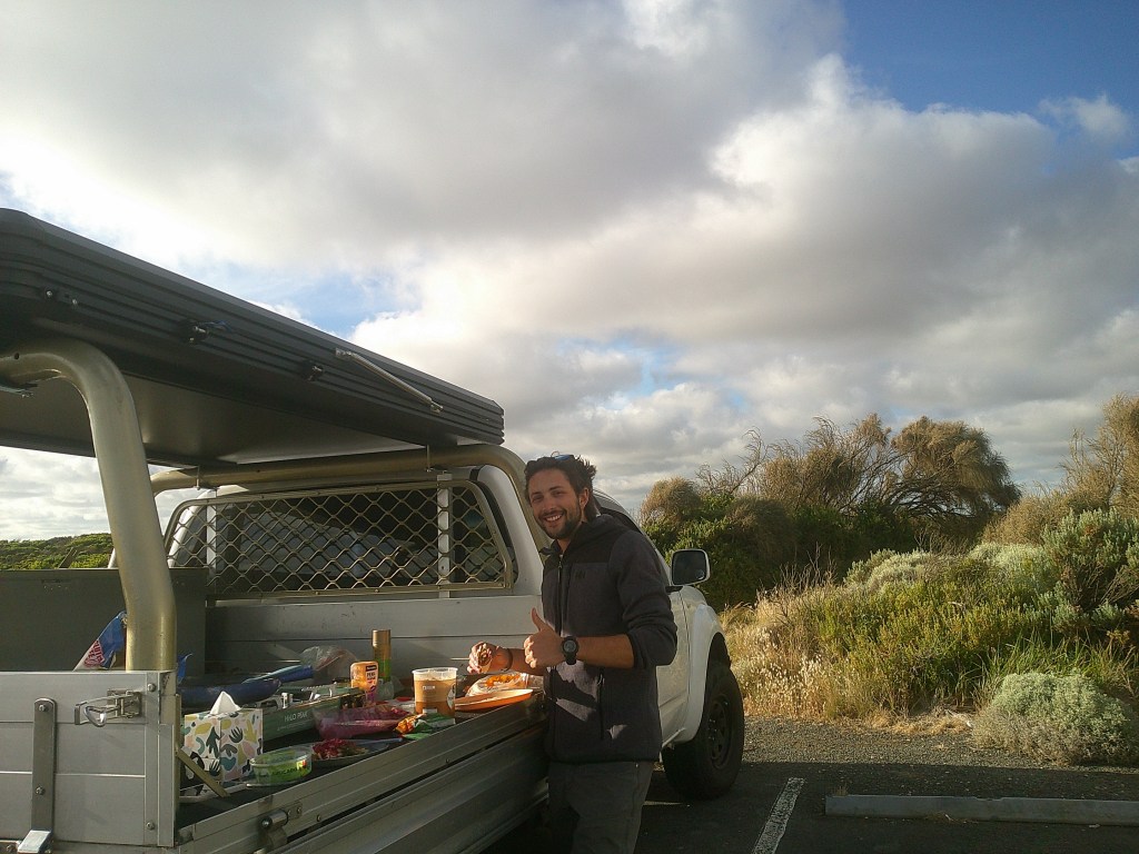By Sunday late afternoon, we made it to the Bay of Islands, which is basically the last attraction on the Great Ocean Road. We cooked dinner on the gas cooker on the tray of my truck and enjoyed the sunset while wild camping close to the coast.